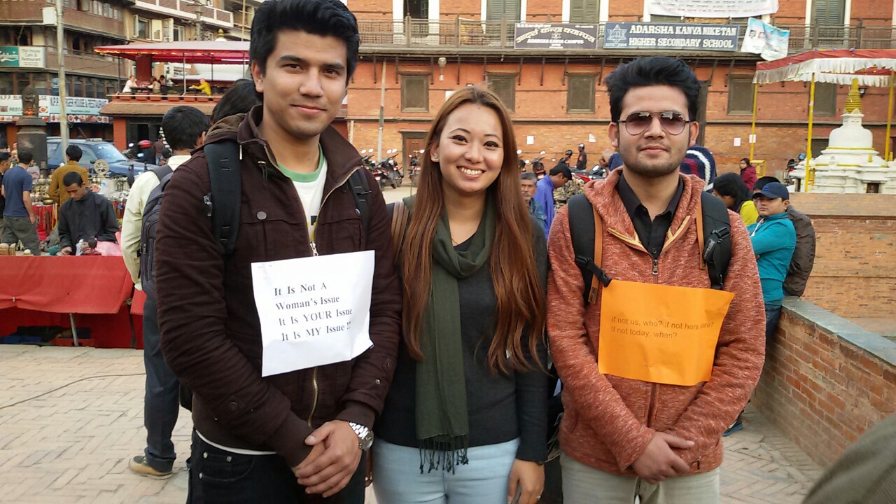 Original President Leo Samrat Basyal (L), President Leo Sarina Shrestha (C) and Third Vice President Leo Dharma Raj Rimal (R) at the closing ceremony of Men's March 2016.